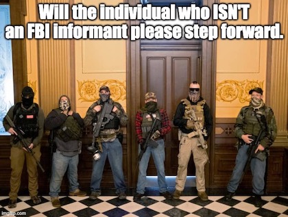Don’t kid yourself: This type of activity has been going on for decades, at least as far back as 1992 and the ATF’s attack on Randy Weaver (a White separatist, NOT supremacist) and his family at Ruby Ridge, Idaho (No, Kommielaa, the state, not you!) initiated by the actions of an ATF “informant”. It’s also noteworthy during the siege Lon Horiuchi, an FBI sniper, shot Weaver’s unarmed wife in the face as she stood in the door of their cabin holding her 10-month-old daughter. Like the unnamed shooter of Ashli Babbitt, Horiuchi never faced justice for killing Vicki Weaver.