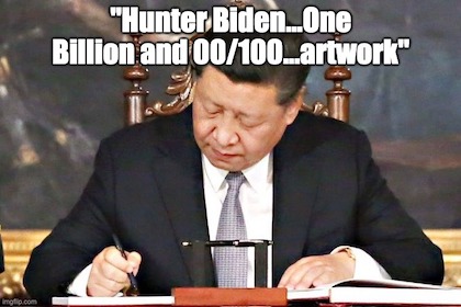 (3). In a real shocker, FOX informs us the dealer representing Hunter’s debut as a “professional” artist has longstanding ties to China, stating in 2015 his desire to be the art world’s “lead guy in China.” Lead guy…Big Guy…we get it!