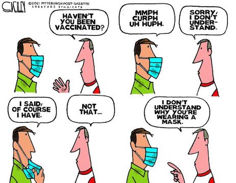 …White House chief of staff — and, some Republicans argue, the de facto prime minister — Ron Klain declared on Twitter that the administration is prioritizing a mask mandate instead of a vaccine mandate because, “anyone who starts vaccination today isn’t fully protected from the virus for six weeks.” (Whether he realizes it or not, he’s talking down the benefits of the vaccines. Yes, two shots are much better against the Delta variant,but getting one shot gives you at least some protection. Even if it’s just 33 percent protection, would you rather have that for the first few weeks or zero percent protection?)