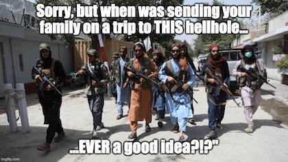 …that is 46*’s handover of Afghanistan to the Taliban, and then some. As reader Bill Meisen noted, there hasn’t been a pull-out so bungled by a Biden since Hunter got that stripper pregnant.