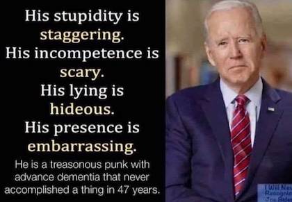 Here’s the juice: Reading the first of Churchill’s six volume The Second World War, we realize Biden is no different than Neville Chamberlain. He may want peace, but they don’t. Thus does The Groper maintain his perfect record of being on the wrong side of every policy and issue since entering public office. And you can add this…