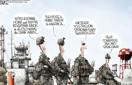 This could impair Democratic priorities in Congress. The Afghan collapse offers a vivid picture of the cost of U.S. disengagement and may make it harder for progressives to transfer more military spending to domestic priorities. A weakened White House could have a harder time marching members into line behind its $3.5 trillion budget blowout.