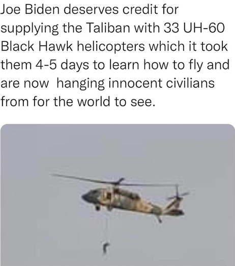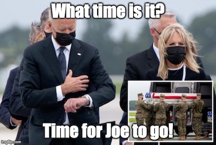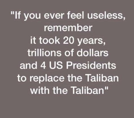 (5). The editors at NRO record Joe Biden’s…and the nation’s…disgrace, as after promising less than two weeks ago to remain in Afghanistan until every American was rescued from the Taliban’s tender mercies, he withdrew with roughly 200 U.S. citizens still in country, this based on the clown car’s own accounting. Stay tuned: You can rest assured future humiliations are on their way. Again, were we Taiwan, we’d be cancelling all leaves and setting DEFCON 1.