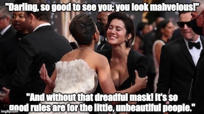 Young unvaccinated children are in far less danger from COVID than vaccinated adults are. The adult world is starting to allow itself more and more events without anti-COVID interventions, so of course we should allow the same for children. Then again, at the Met Gala and in many restaurants around the world, masks are becoming a de facto class signifier. Servers are expected to wear them because masks signal their commitment to keep the clientele safe. But the patrons don’t have to wear them, presumably because they are paying. If the images of masked servants make us step back in disgust, so should images of masked children standing aside unmasked adults.