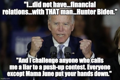 Yeah,…and Slick Willy never had sex with that woman…Ms. Lewinsky. Then again, perhaps 46* feels the fruits of graft and corruption are just as much his due as Clinton did sex from those in his employ.