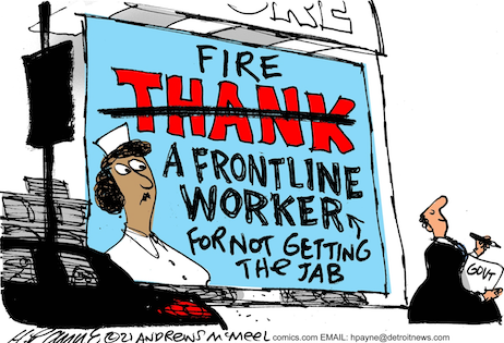 …The suggestion in many articles is that people who refuse vaccination are forcing widespread life-and-death choices. Journalists appear to be channeling President Biden who, in remarks late last week, chastised “the unvaccinated [who] overcrowd our hospitals, overrunning emergency rooms and intensive care units, leaving no room for someone with a heart attack or a cancer operation needed to get the lifesaving care because the places where they would get that care are crowded; they are not available.”