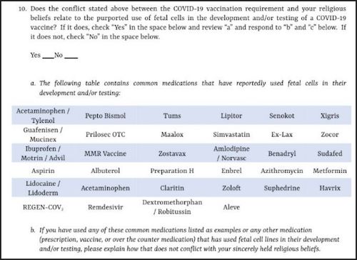 — “Is your request based on a belief that vaccines violate religious teachings that say ‘the body is a temple of the Holy Spirit’ or is your religious belief based on faith healing?”