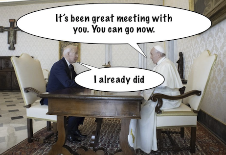 Roughly translated, Mr. Biden says: My obligation is to talk at length about moral imperatives, to cite ever more alarmist scenarios about the threat we face and to commit to ever grander projects and spending plans for which I get slapped on the back for my courage over lavish dinners in international hotels and blessed in papal palaces.