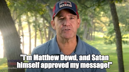 Then there’s this bit of theological claptrap from former Republican Bush strategist and newly-minted Dimocrat Matthew Dowd, who’s running against Dan Patrick for Lieutenant Governor in Texas: