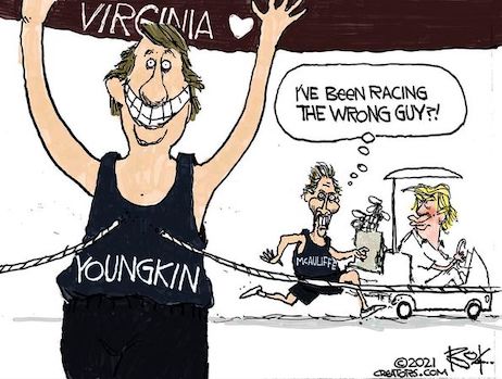 (7). Since we’re on the subject of pathological liars, showing either the Progressive’s penchant for prevarication…or a total detachment from reality…Senators Mark WarnerandTim Kainebothclaimed in “separate” statements Sunday Terry McAuliffe could have defeated Glenn Youngkin if Congress had passed the Biden administration’s infrastructure bill sooner. Something tells us this is the latest Dimocratic talking point, soon to be parroted across Progressivism.