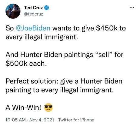 (1). NRO‘s Zach Evans records how the House passed the infrastructure bill on Friday night, with representatives breaking into cheers as they saddled our children and their children with another $1 trillion in useless, unfunded, unrepayable debt. 13 Republicans gave the bill the necessary backing to pass, proving yet again, as Christ said in Matthew 10:36, “And a man’s foes shall be they of his own house.” BTW, David Marcus’s “expert analysis” of the vote at FOX News is too cute by way more than a half.