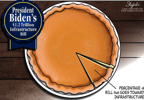 “…The country needs spending on such public works as roads and bridges, and some projects will offer an economic return on the investment. But this bill throws money at far more than that, with only $110 billion reserved for this traditional infrastructure.