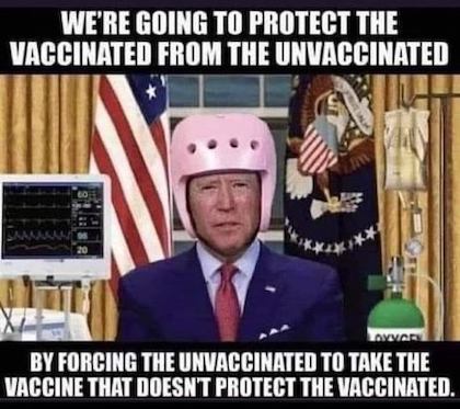 It’s Friday, December 17th, 2021…but before we begin, allow us to present a meme from Ed Hickey which, in our opinion, perfectly portrays the pointlessness and completely counterproductive nature of our government’s response (begun, we must remind diehard Trumpeteers, by The Donald) to the WuFlu: