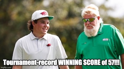 …while John Daly and his son shoot a tournament record 15-under par to win...