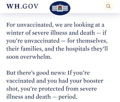 “We are intent on not letting Omicron disrupt work and school for the vaccinated. You’ve done the right thing, and we will get through this. For the unvaccinated, you’re looking at a winter of severe illness and death for yourselves, your families, and the hospitals you may soon overwhelm.“
