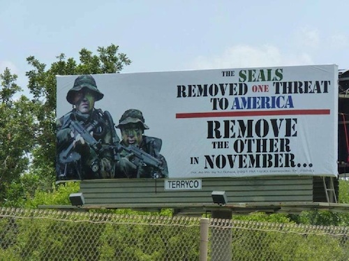 And as some of you apparently failed to catch this must-see billboard the first time we ran it: back for an encore performance, a Brendan Clark adaptation of a Shannon Wood production: