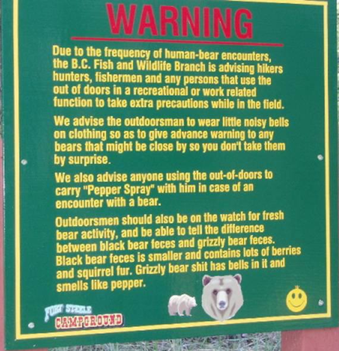 Unfortunately for the naive Mr. White, as this sign forwarded by experienced grizz-hunter Bill Meisen suggests, the bear had some training of his own:
