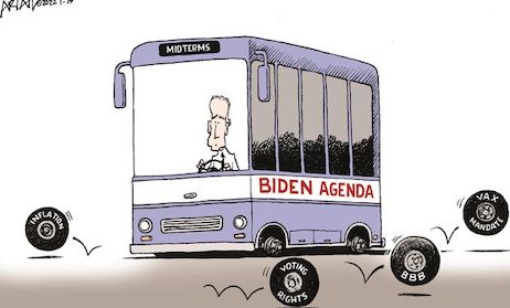 We’ll leave the last word on what ails the Biden clown car to the Journal‘s Kim Strassel, who accurately assesses the problem isn’t bad “messaging”, the WuFlu or inflation. It’s the Democrats’ bad ideas.